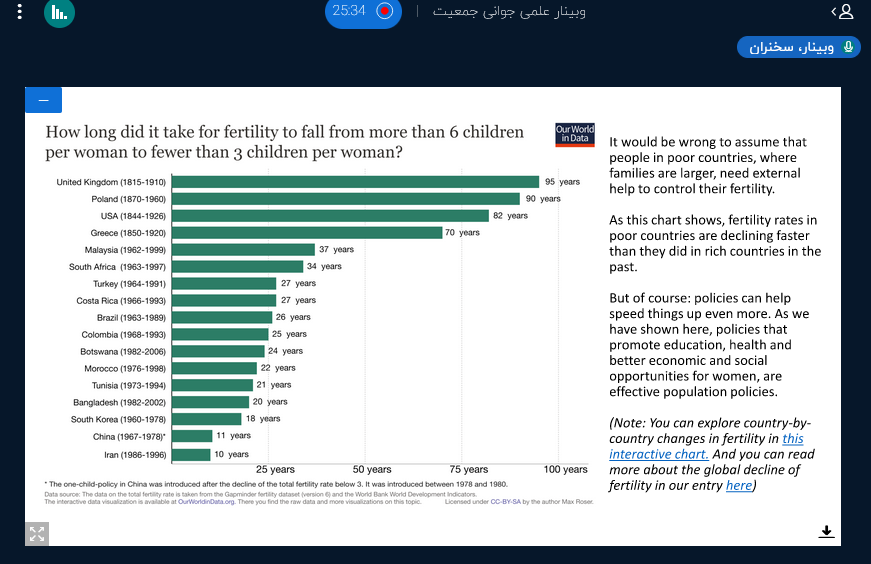 اولین جلسه سلسله وبینار های جوانی جمعیت و سلامت خانواده با موضوع جوانی جمعیت برگزار شد
