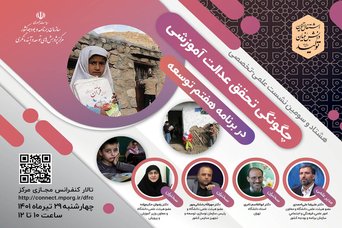 هشتاد و سومین نشست علمی، تخصصی با عنوان "چگونگی تحقق عدالت آموزشی در برنامه هفتم توسعه" به شیوه مجازی برگزار می گردد.