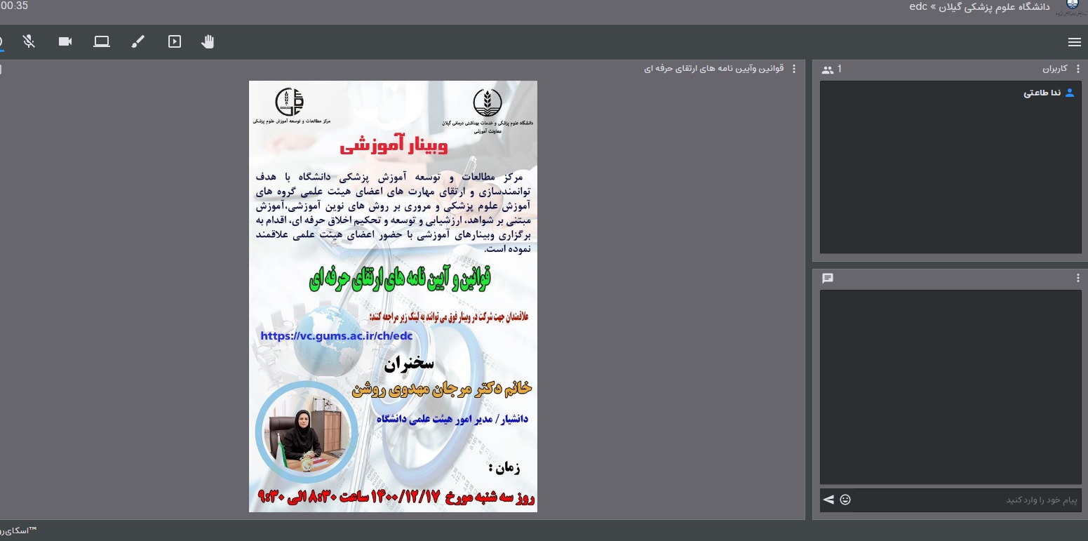 وبینار آموزشی با عنوان« قوانین و آیین نامه های ارتقاء حرفه ای » از سری برنامه های توانمند سازی اساتید در دوره آموزش پزشکی مقدماتی برگزار شد.