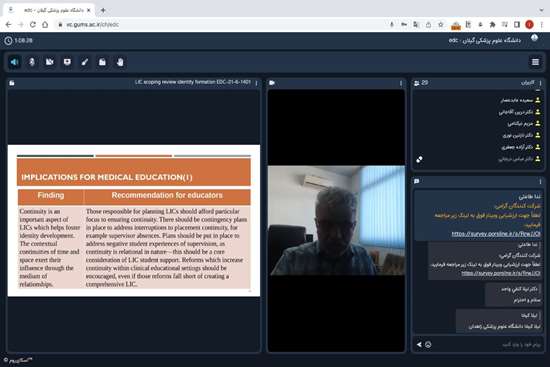 به گزارش روابط عمومی معاونت آموزشی دانشگاه علوم پزشکی گیلان؛ مرکز مطالعات و توسعه آموزش پزشکی در راستای برنامه جامع عدالت، تعالی و بهره وری در آموزش علوم پزشکی  وبینار ژورنال کلاب آموزش مبتنی بر شواهد با موضوع " Professional identity formation within longitudinal integrated clerkships: A scoping review" را روز دوشنبه 21 شهریور 1401 از ساعت 10 الی 12 ویژه اعضای هیئت علمی برگزار نمود. در این وبینار که با سخنرانی دکتر آبتین حیدرزاده عضو هیئت علمی دانشگاه علوم پزشکی و مدیر گروه پزشکی اجتماعی برگزار شد، موضوعاتی شامل تأثیر LIC بر هویت شغلی، توسعه هویت از جهت گیری های اجتماعی-فرهنگی مورد بحث و بررسی قرار گرفت.