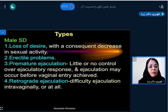 در وبینار مذکور، مطالب جامعی در خصوص ناباروری در مردان، سلامت و سازگاری جنسی، نازایی و چالش های آن، چاقی آفت زندگی سالم مشترک ارائه شد.